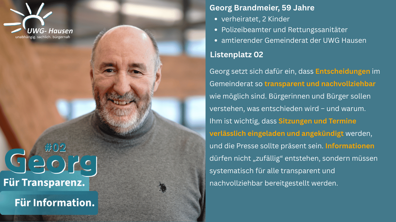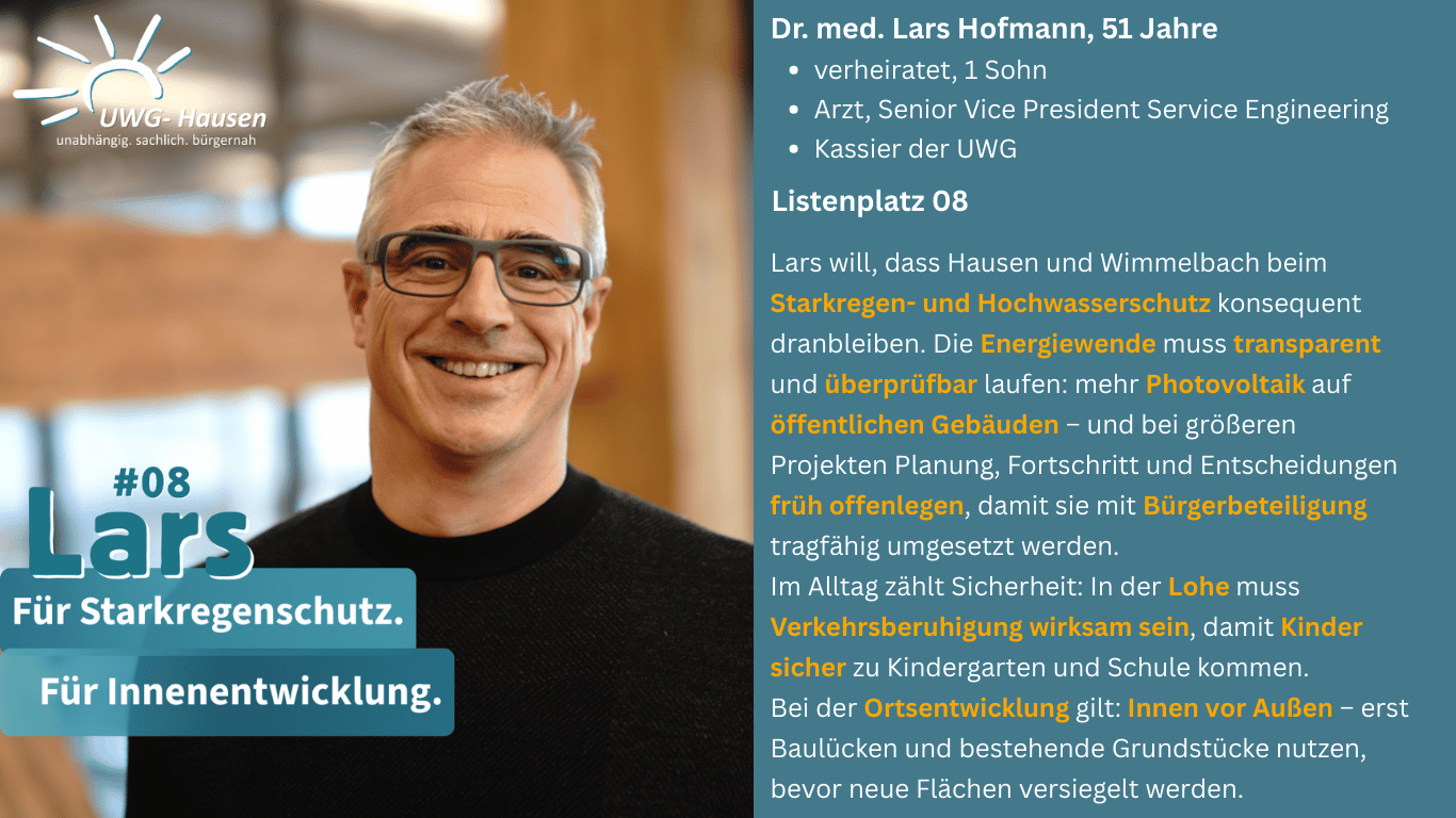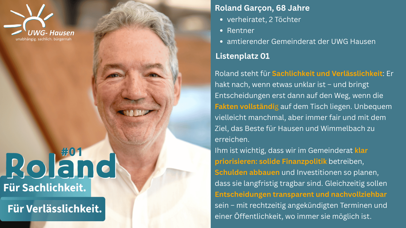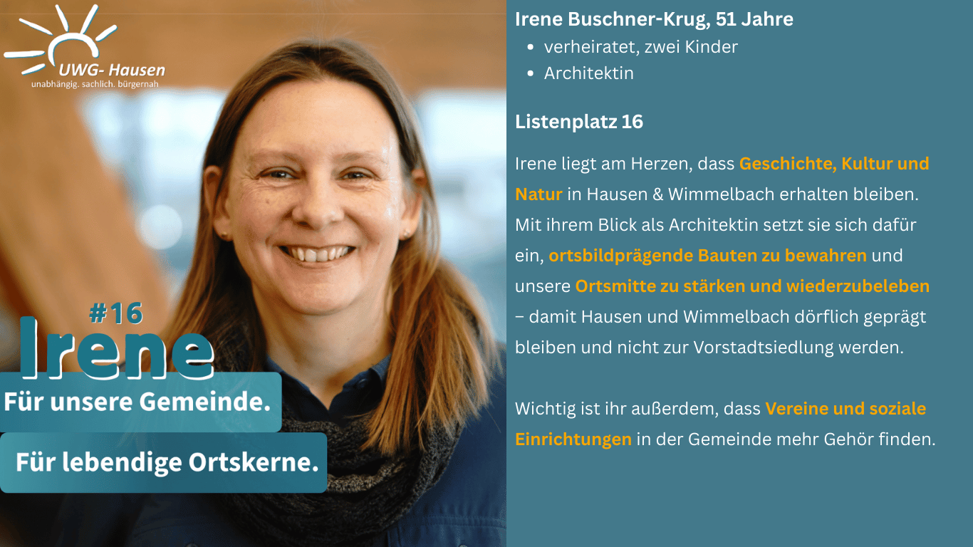 und einem Statement des jeweiligen UWG-Hausen Kandidaten.