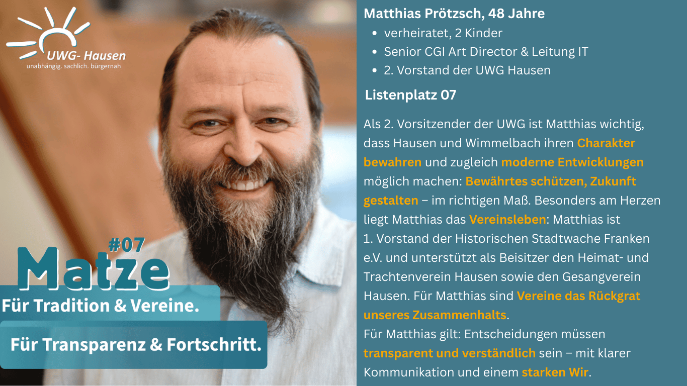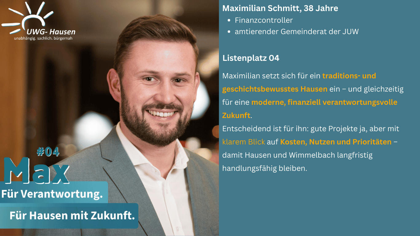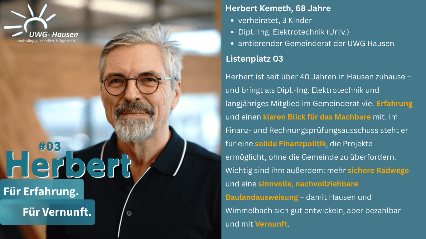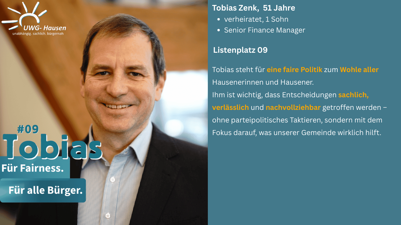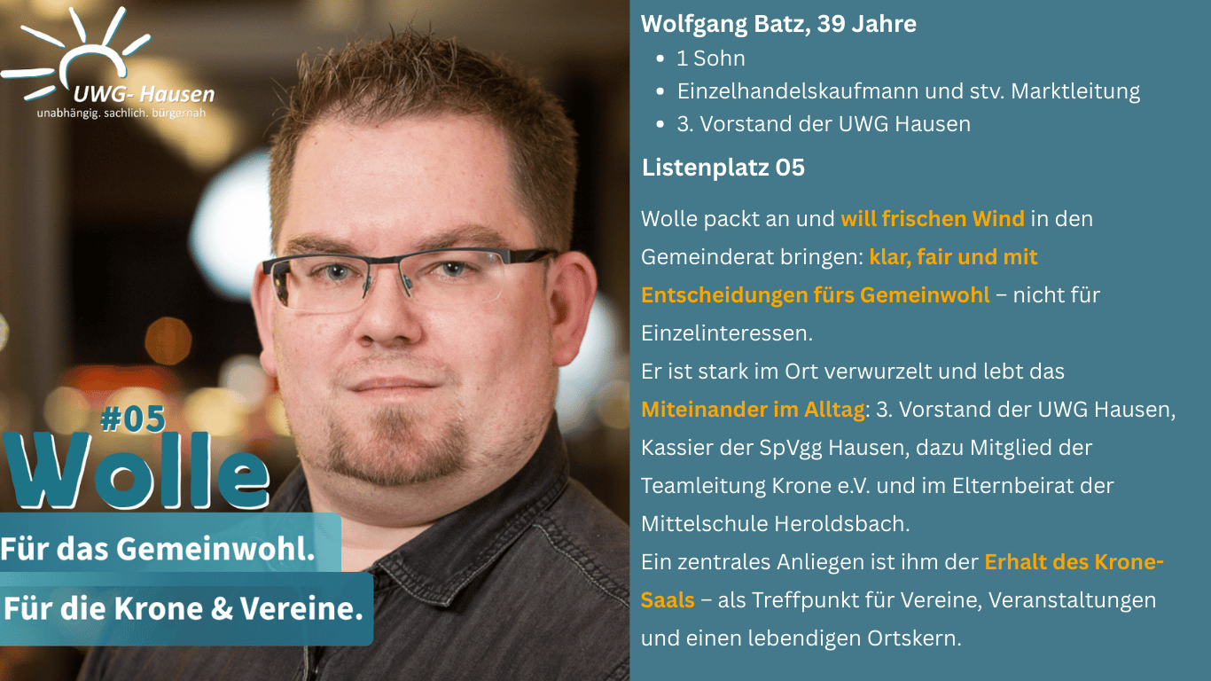 und einem Statement des jeweiligen UWG-Hausen Kandidaten.