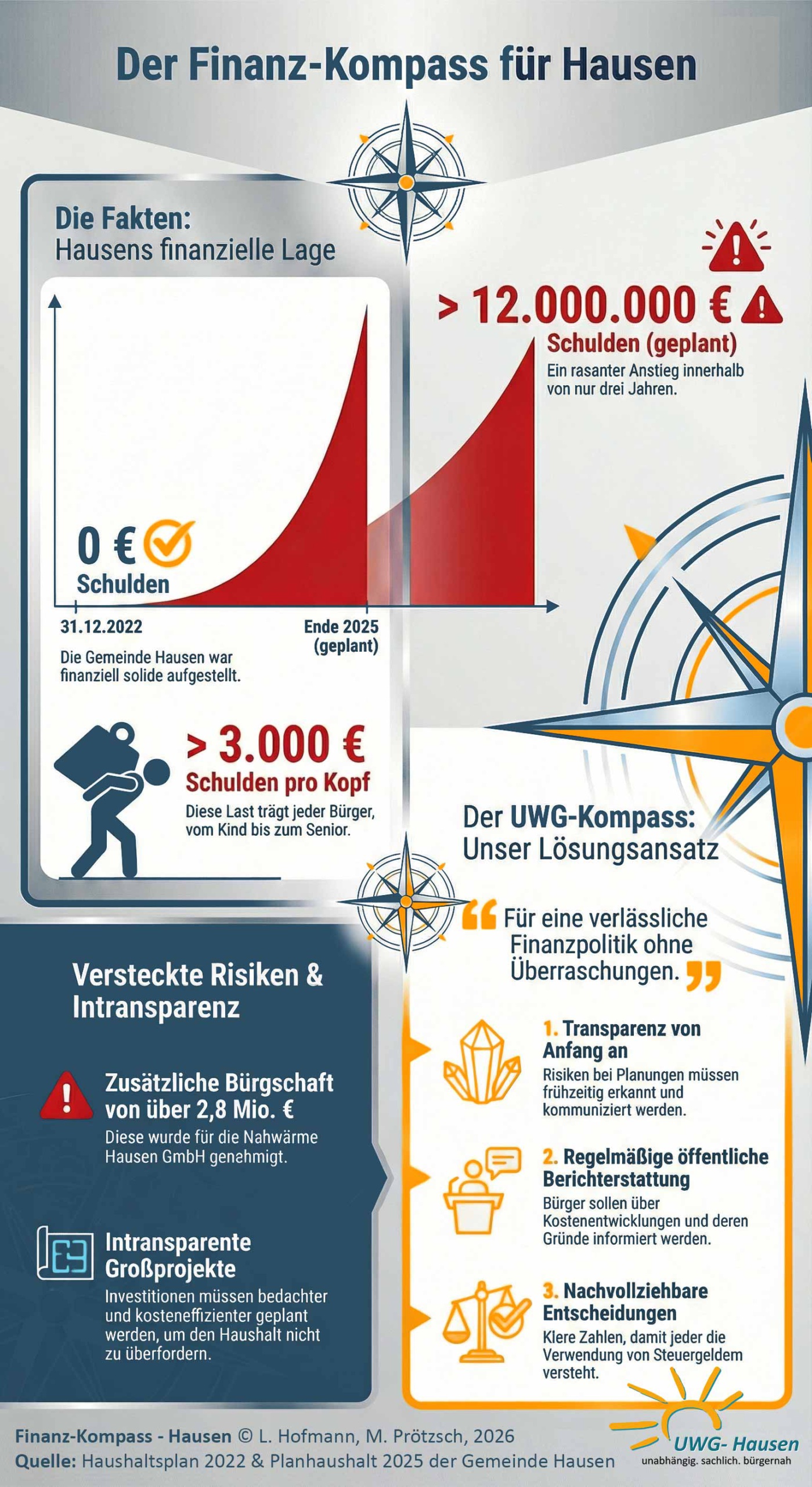 Unser Versprechen: Klare Zahlen statt Überraschungen – und Entscheidungen, die jede Bürgerin und jeder Bürger nachvollziehen kann.